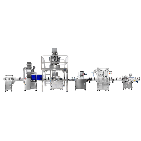 本款灌裝機(jī)是一款針對(duì)顆粒狀的花生米、花生仁、堅(jiān)果類、顆粒固體類進(jìn)行灌裝到瓶子當(dāng)中的機(jī)械設(shè)備,該機(jī)由:多頭秤定量機(jī)、全自動(dòng)易拉罐封口機(jī)、全自動(dòng)壓蓋機(jī)、高速旋蓋機(jī)、全自動(dòng)貼標(biāo)機(jī)組成的一條生產(chǎn)線。該機(jī)采用PLC控制,無(wú)需人工參與!機(jī)械自動(dòng)下料、自動(dòng)填充,自動(dòng)封口貼標(biāo)。
